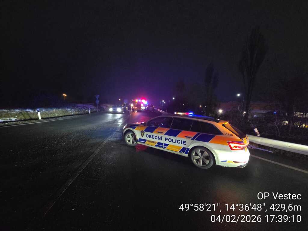 Dne 4. února 2026 v 17:25 hodin přijala Obecní policie Vestec prostřednictvím SMS zprávu o výjezdu Hasičského záchranného sboru k dopravní nehodě se zraněním na přemostění dálnice D1 mezi kruhovými objezdy na komunikaci II/101.