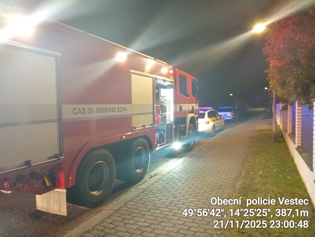 Dne 21. 11. 2025 ve 22:45 přijala Obecní policie Vestec oznámení prostřednictvím SMS o podezření na požár nízké budovy. Na místo okamžitě vyjela hlídka OP Vestec. Současně byly povolány jednotky HZS Jílové, SDH Ohrobec a SDH Zvole.