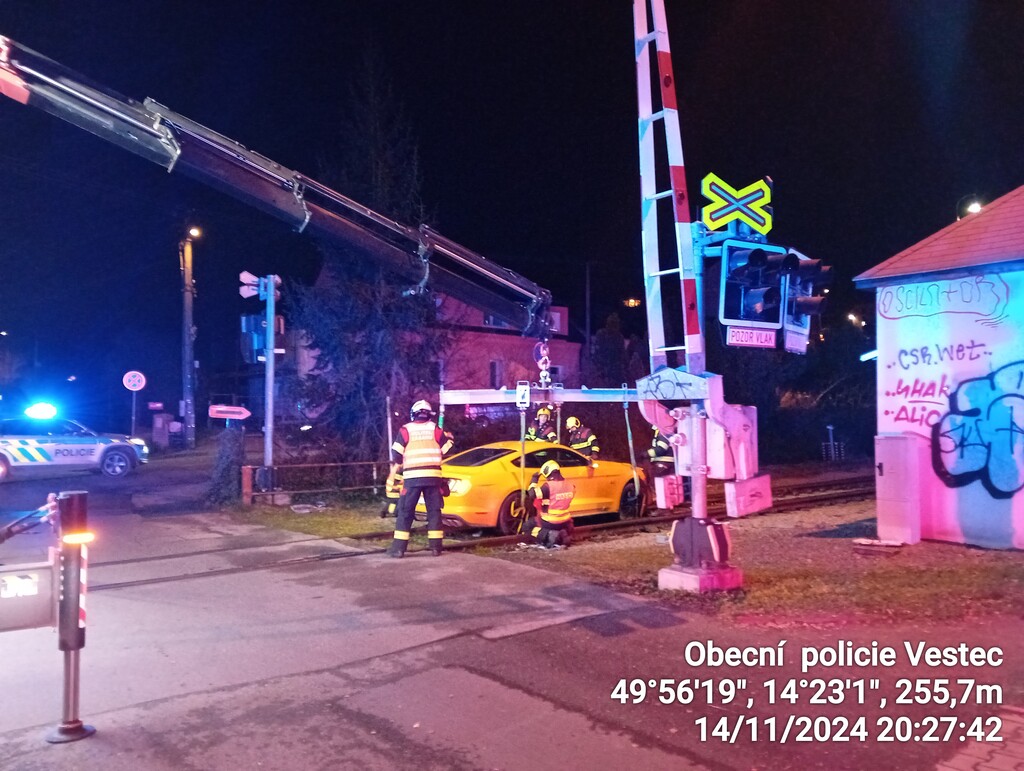 Dne 14.11.2024 ve večerních hodinách byla přijata od Policie ČR telefonická žádost o součinnost ohledně uvízlého vozidla v kolejišti na křižovatce ulic Ke Zvoli a Březovská. Na místě zasahovala také jednotka hasičů ze Zvole a Jílového u Prahy. Ve spolupráci s Policií ČR byl přejezd uzavřen a vozidla posílána objízdnou trasou.